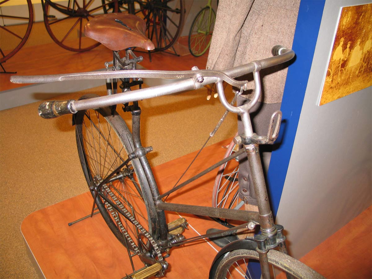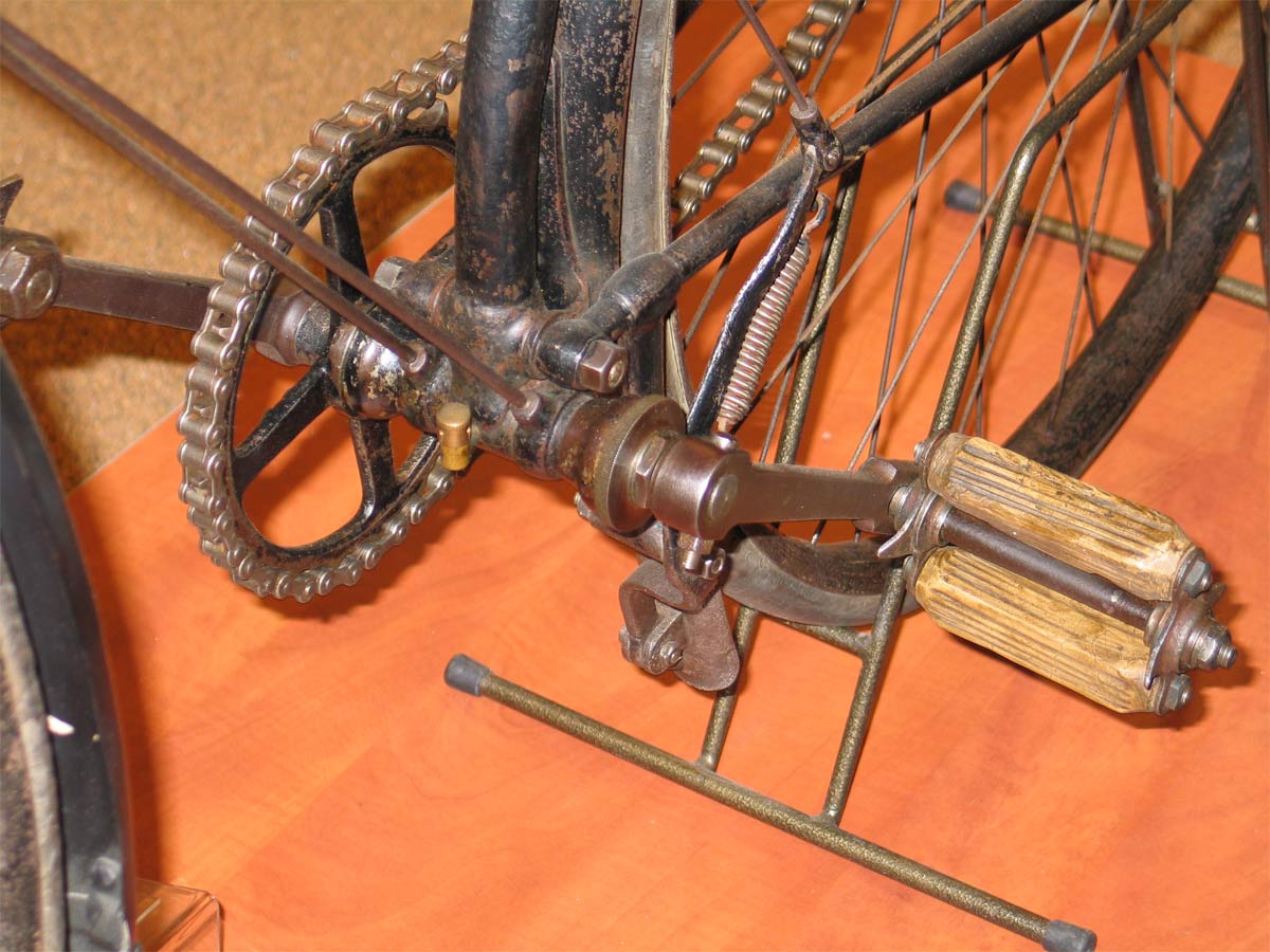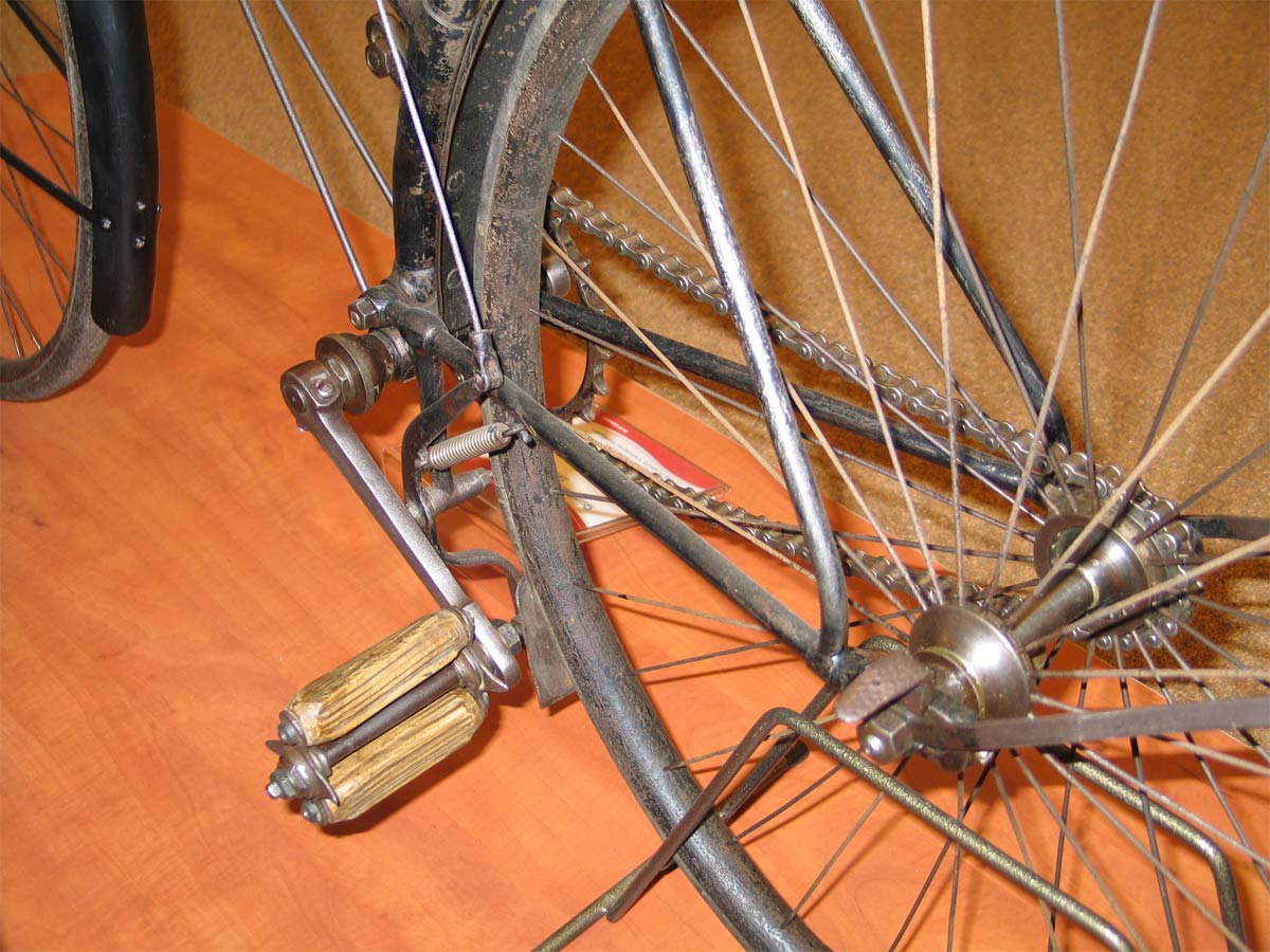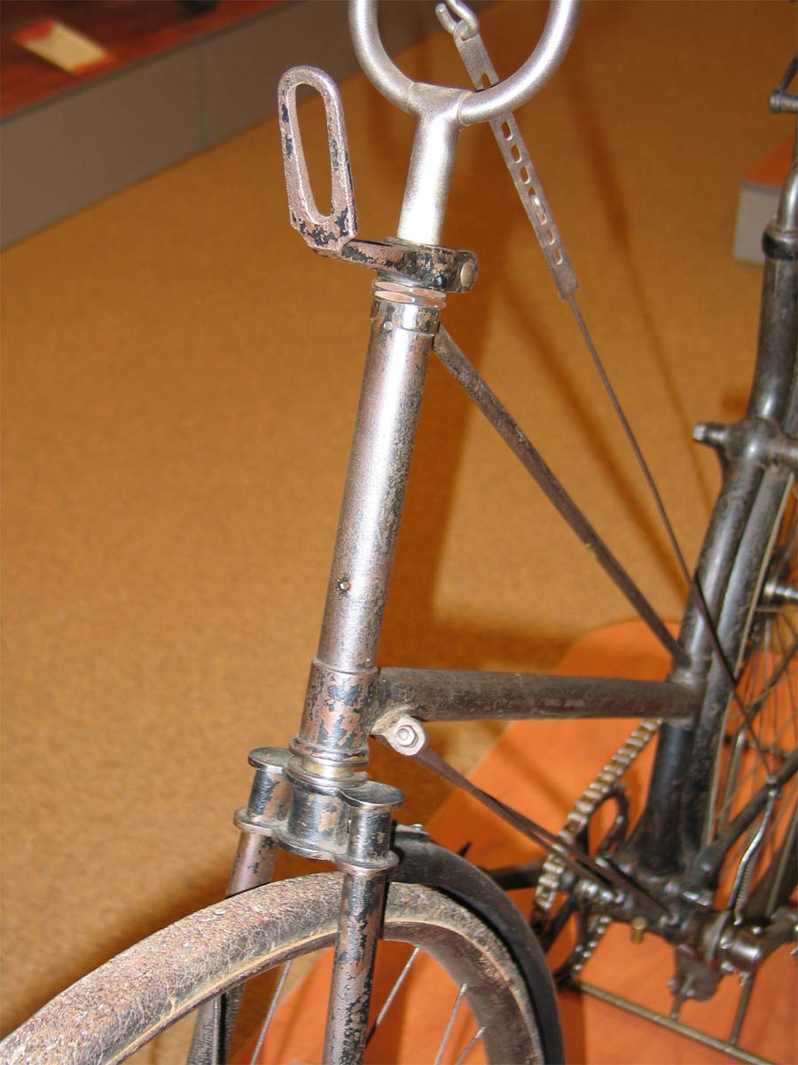 1888, but I found it in an 1891 catalogue with this rear brake, so I guess 1891 would be a better guess. I read in several books that this semi-diamond frame of Quadrant was already for sale in 1889, they called it the No. 17. Those earlier models have the more usual type of front wheel brake. But the semi-diamond frame and the ball head were really very modern for that year.